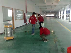 3、清理地面堆積的雜物,將地面塵土吸凈,對(duì)各種軟性硬性地面進(jìn)行消毒清洗,清除地面上的污漬;