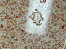 傳統的水磨石以其造價低廉、可任意調色拼花、施工方便等獨特的優勢,在中國有著巨大的市場,已在全國城鄉各類建筑物中使用的水磨石地面有十萬億平方米之多。然而,傳統的施工技術造成水磨石地面十分粗糙、藏污納穢,甚至還未交付使用就已骯臟不堪,更給日常衛生保潔帶來嚴重阻礙。同時,隨著時間的推移,實際使用中卻遇到了十分突出的問題:水磨石風化、磨蝕、污跡斑斑、黯淡無光。 尤其是許多廠房地面,因其獨特的使用環境,加之長時間沒有護理保養,更是慘不忍睹。如何使已經風化、磨蝕的水磨石恢復其原有的亮麗美感,甚至達到大理石一樣的美觀,是清洗及建筑裝飾行業越來越迫切要解決的問題。 我公司經過多年的潛心研究及大量工程實踐將傳統水磨石地面經過翻新結晶后將使地面可與高檔大理石媲美,經久耐用。